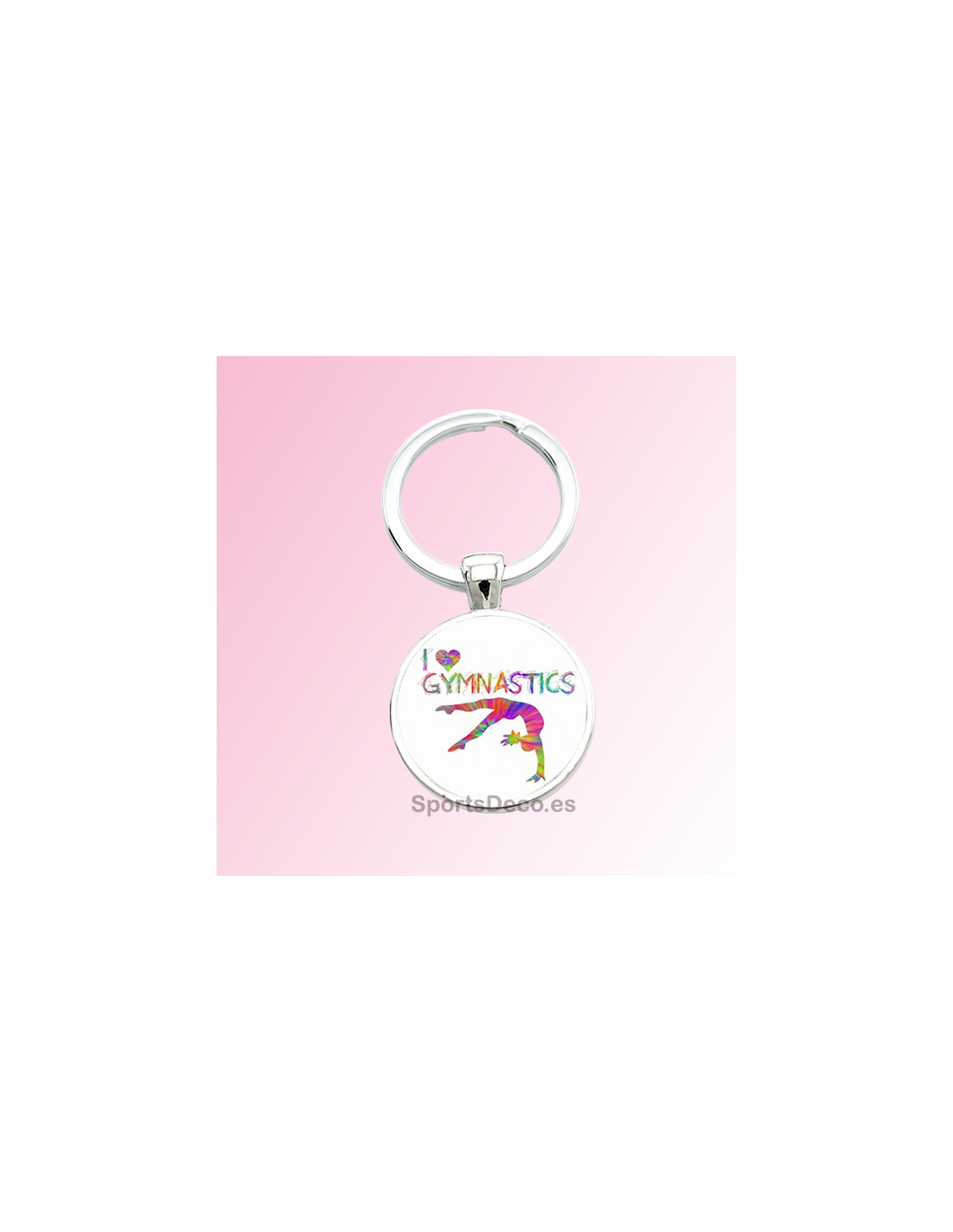 Llavero Figura "I Love Gymnastics" hecho de Cristal Con Base Metalica.