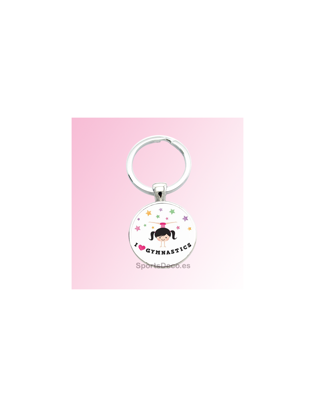 Llavero Figura "I Love Gymnastics" hecho de Cristal Con Base Metalica.