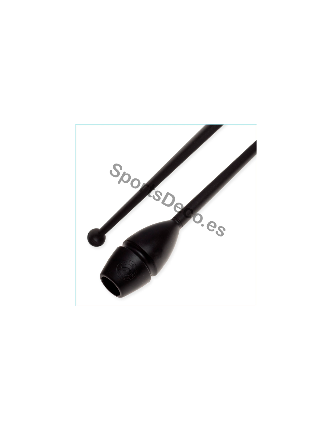Mazas de goma bicolor engarzable para gimnasia rítmica. Cabeza de caucho (Negra) y palo de plástico (Negra).