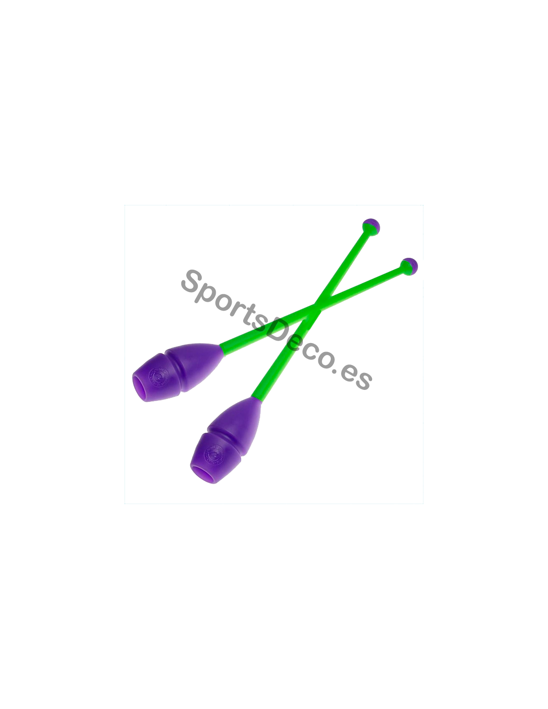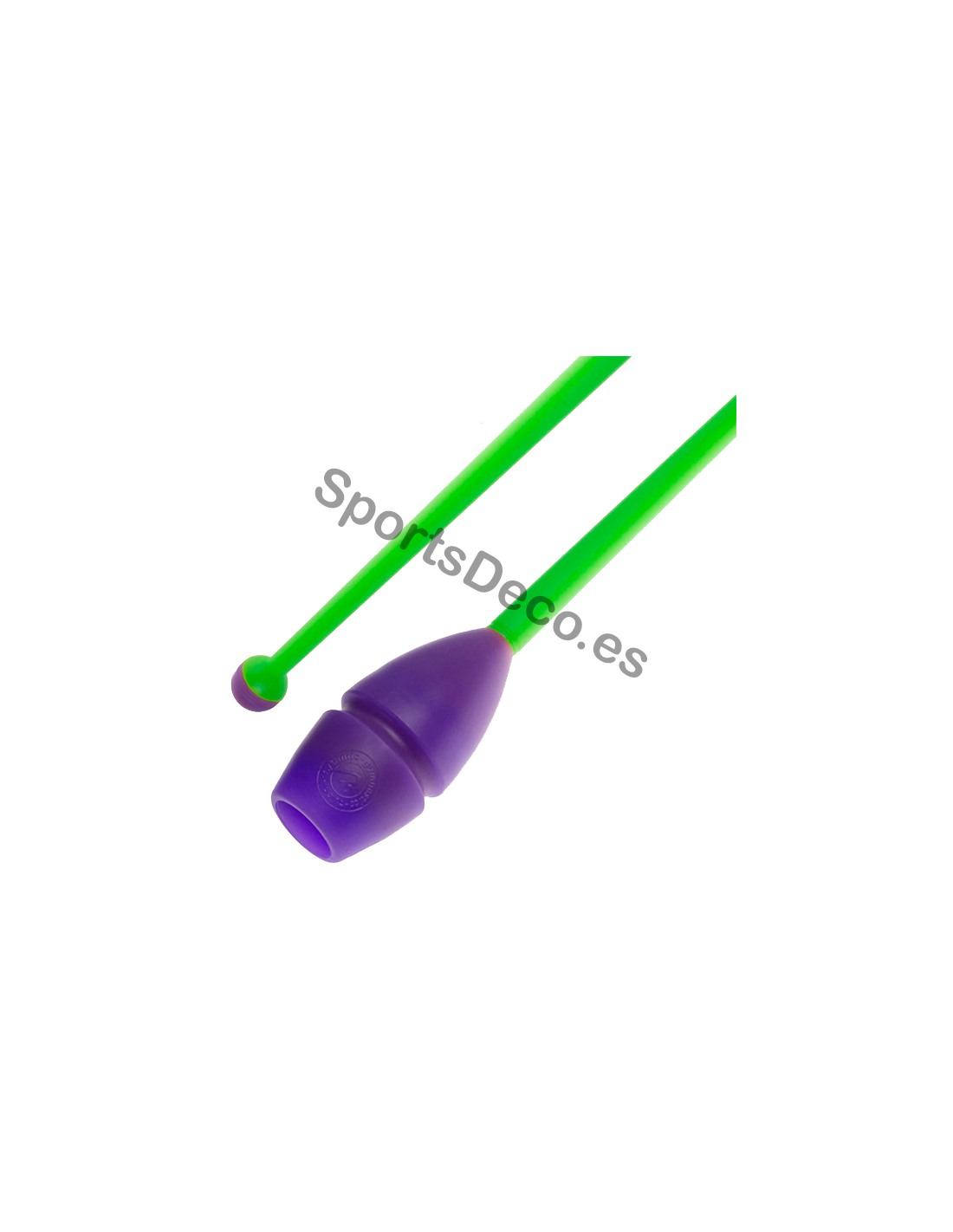 Mazas de goma bicolor engarzable para gimnasia rítmica. Cabeza de caucho (Violeta) y palo de plástico (Verde).