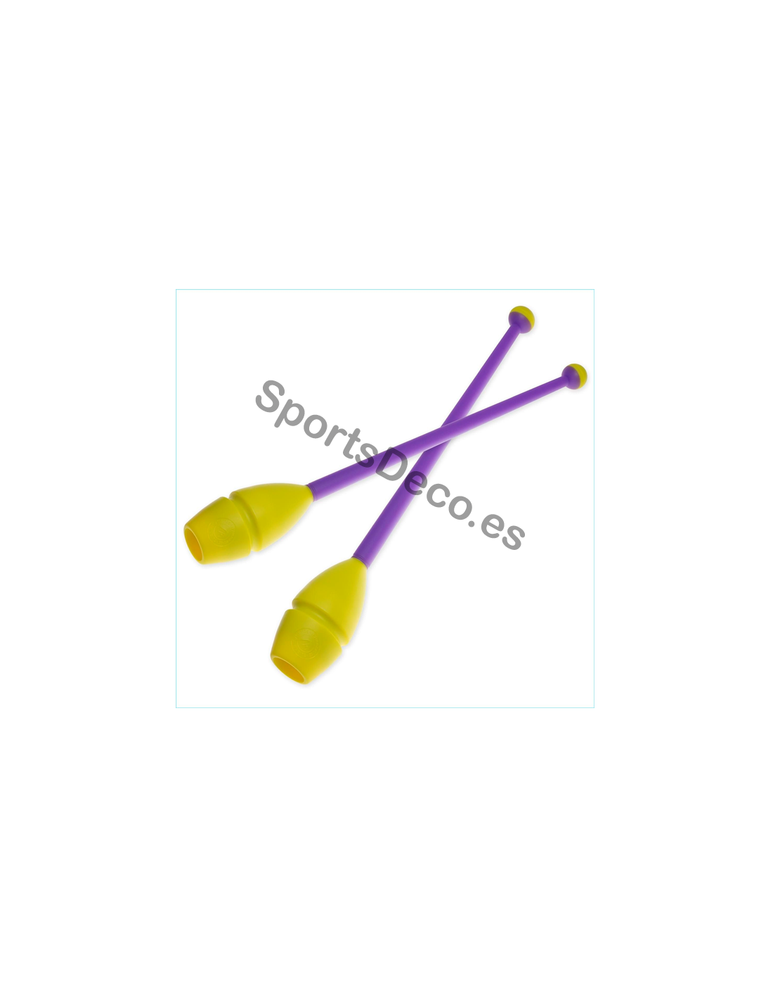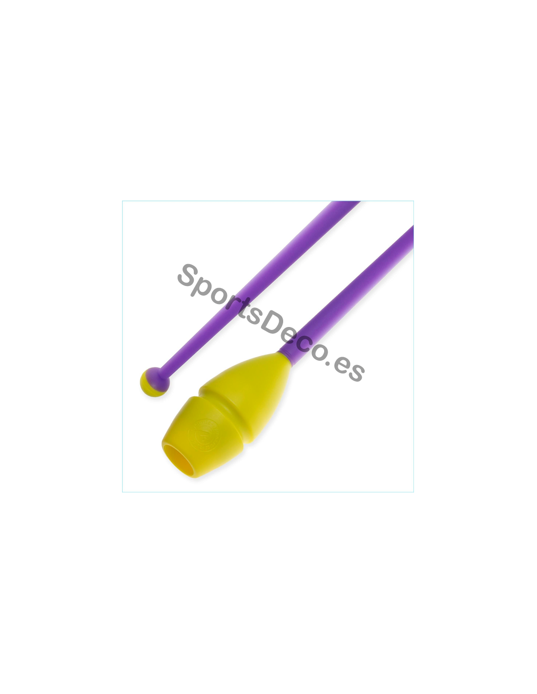 Mazas de goma bicolor engarzable para gimnasia rítmica. Cabeza de caucho (Aguamarina) y palo de plástico (Negro).