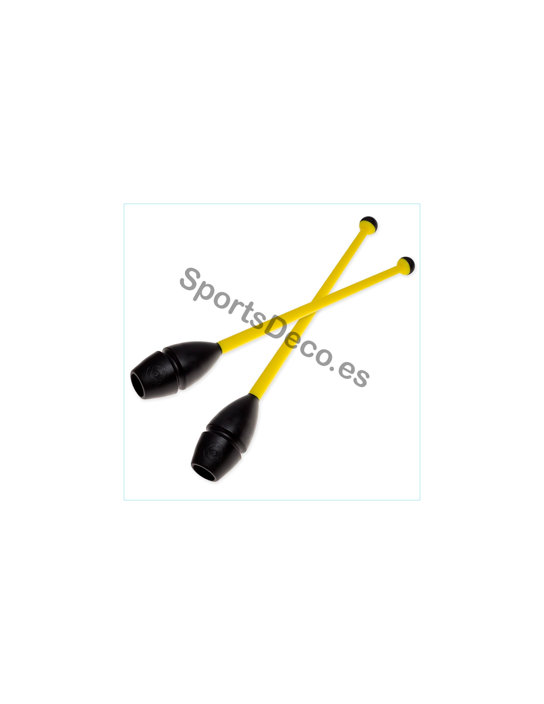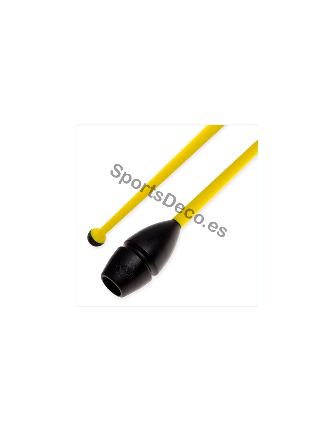 Mazas de goma bicolor engarzable para gimnasia rítmica. Cabeza de caucho (Aguamarina) y palo de plástico (Negro).