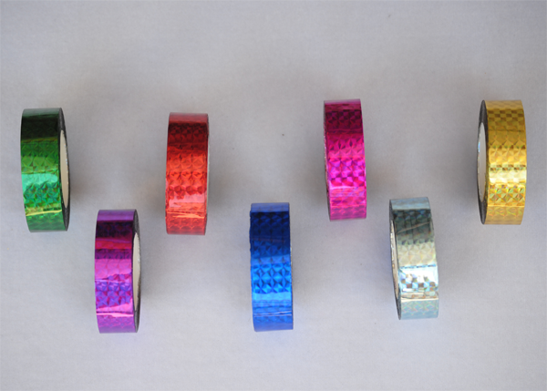 Rollo de 27,5 metros de Cinta decorativa efecto prismatico, con pegamento continuo (aprox 3 aros).