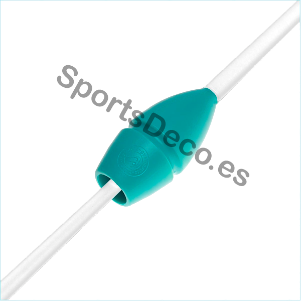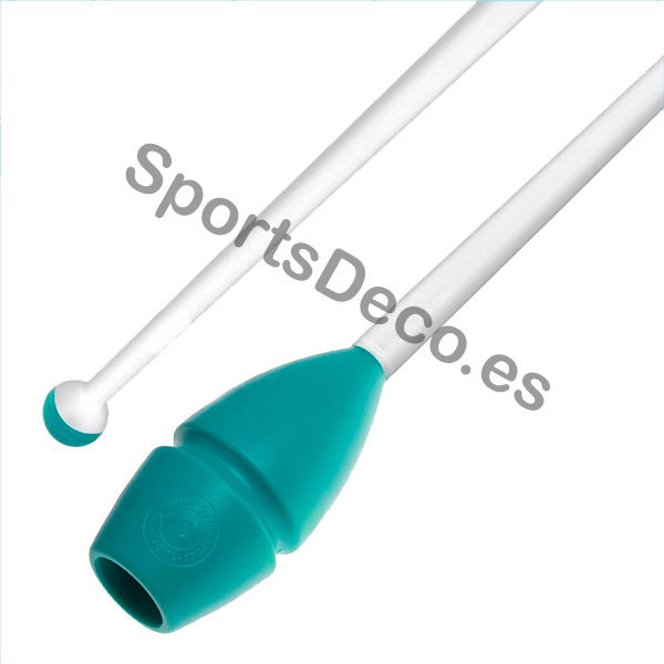 Mazas de goma bicolor engarzable para gimnasia rítmica. Cabeza de caucho (Aguamarina) y palo de plástico (Blanco).