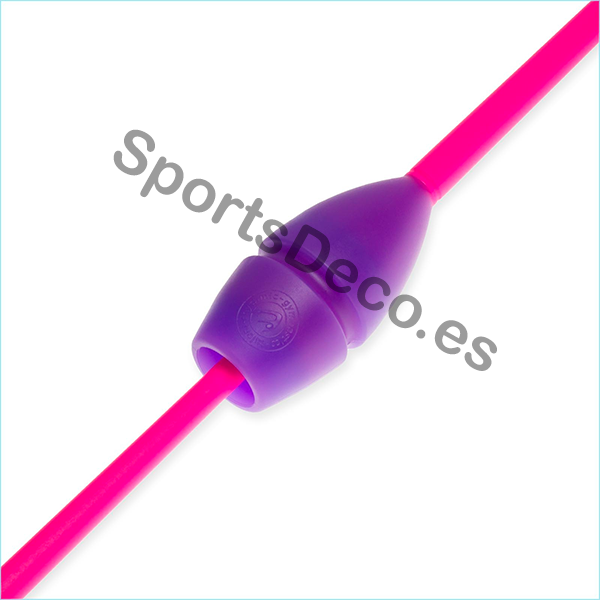 Mazas de goma bicolor engarzable para gimnasia rítmica. Cabeza de caucho (Violeta) y palo de plástico (Rosa).
