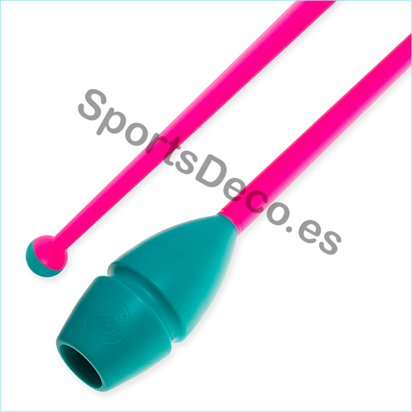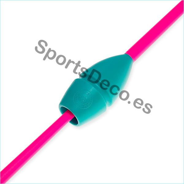 Mazas de goma bicolor engarzable para gimnasia rítmica. Cabeza de caucho (Aguamarina) y palo de plástico (Rosa).