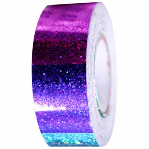 Diferentes colores cambian a lo largo de toda la longitud de la cinta adhesiva, creando un efecto de arco iris. Hay colores: dorado, verde, fucsia, celeste, rojo, plateado, violeta.