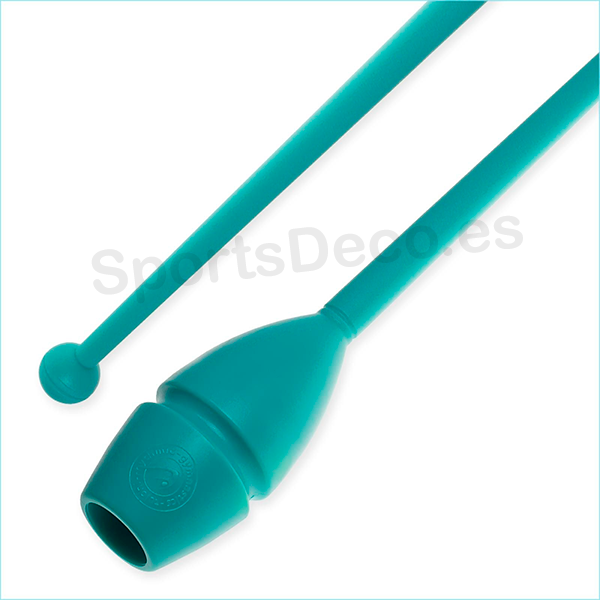 Mazas de goma bicolor engarzable para gimnasia rítmica. Cabeza de caucho (Aguamarina) y palo de plástico (Negro).