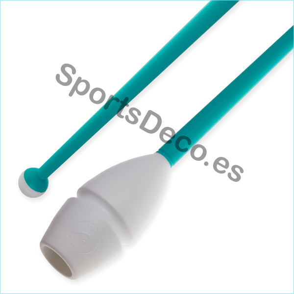 Mazas de goma bicolor engarzable para gimnasia rítmica. Cabeza de caucho (Aguamarina) y palo de plástico (Negro).