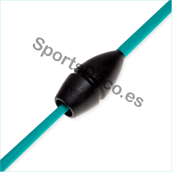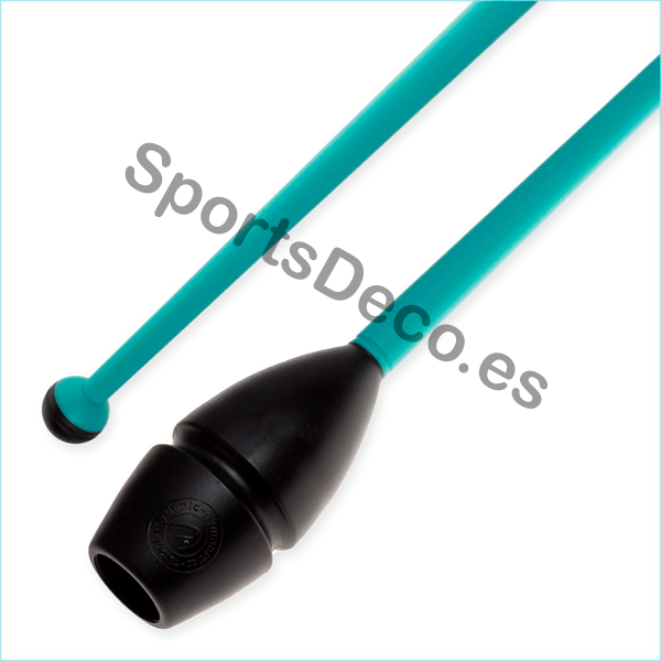Mazas de goma bicolor engarzable para gimnasia rítmica. Cabeza de caucho (Negra) y palo de plástico (Aguamarina).