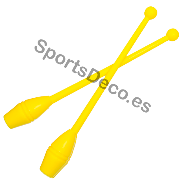 Mazas de goma bicolor engarzable para gimnasia rítmica. Cabeza de caucho (Amarillo) y palo de plástico (Amarillo).