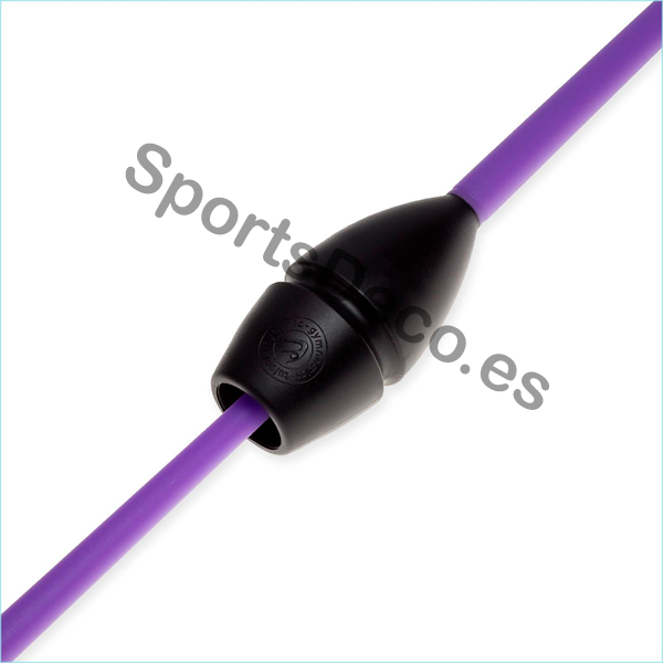 Mazas de goma bicolor engarzable para gimnasia rítmica. Cabeza de caucho (Negra) y palo de plástico (Violeta).
