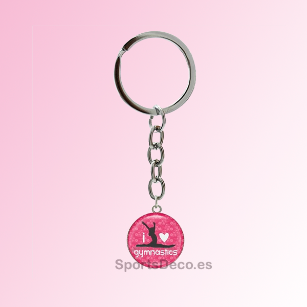 Llavero Figura «I Love Gymnastics» hecho de Cristal Con Base Metalica.